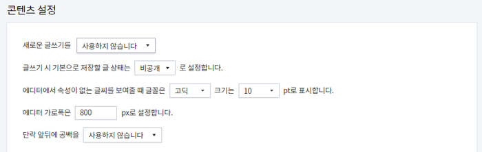 블로그 관리 메뉴에서 콘텐츠 - 설정을 클릭하면 에디터 버전을 변경할 수 있다.
