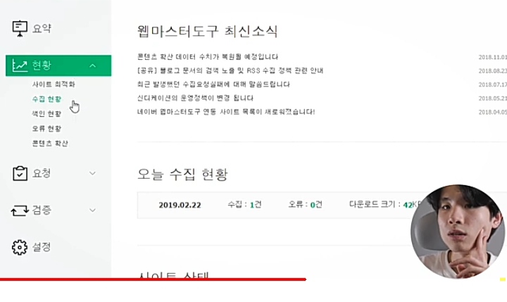 영상 속 현황 메뉴는 현재 리포트로 변경되었으며 리포트를 클릭하면 수집 현황 버튼을 찾을 수 있다.