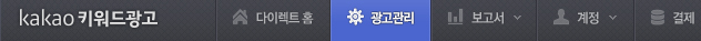 카카오 키워드 광고로 접속하시면 상단에 위의 이미지와 같은 메뉴가 보입니다.